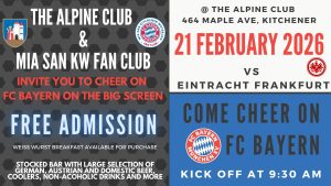 Kick off at 9:30 a.m. on the big screen, at the Alpine Club, 464 Maple Avenue, Kitchener.